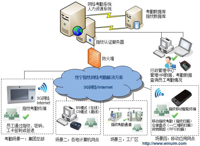 因此,对于企业提出的人事考勤管理需求,我们专为企业定制一套基于网络的指纹人脸虹膜考勤管理解决方案。