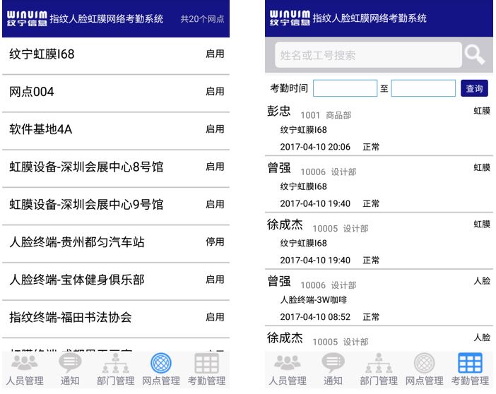 生物特征验证安全性极高,识别速度快、识别正确率高;未登记指纹、虹膜或人脸均无法通过验证,即无法实现网络考勤;可以实现跨地域考勤,考勤记录实时查询;考勤不依赖于网络状况。