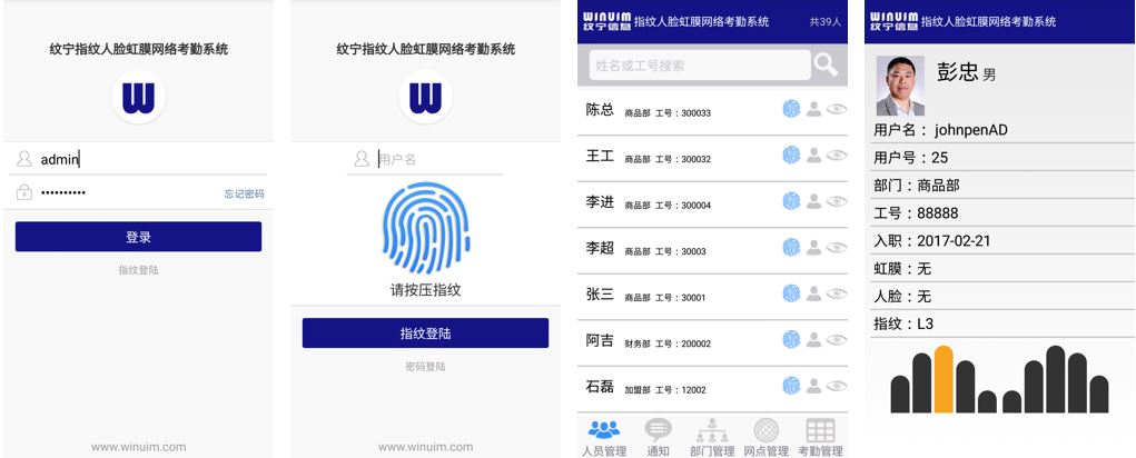 - 考勤类型:人脸、指纹、IC卡、密码考勤