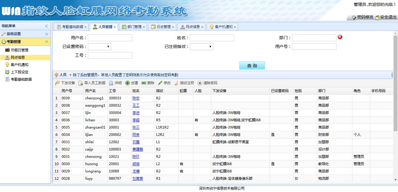 (一)、用户指纹特征信息采集、指纹图像信息采集、指纹数据统一管理;